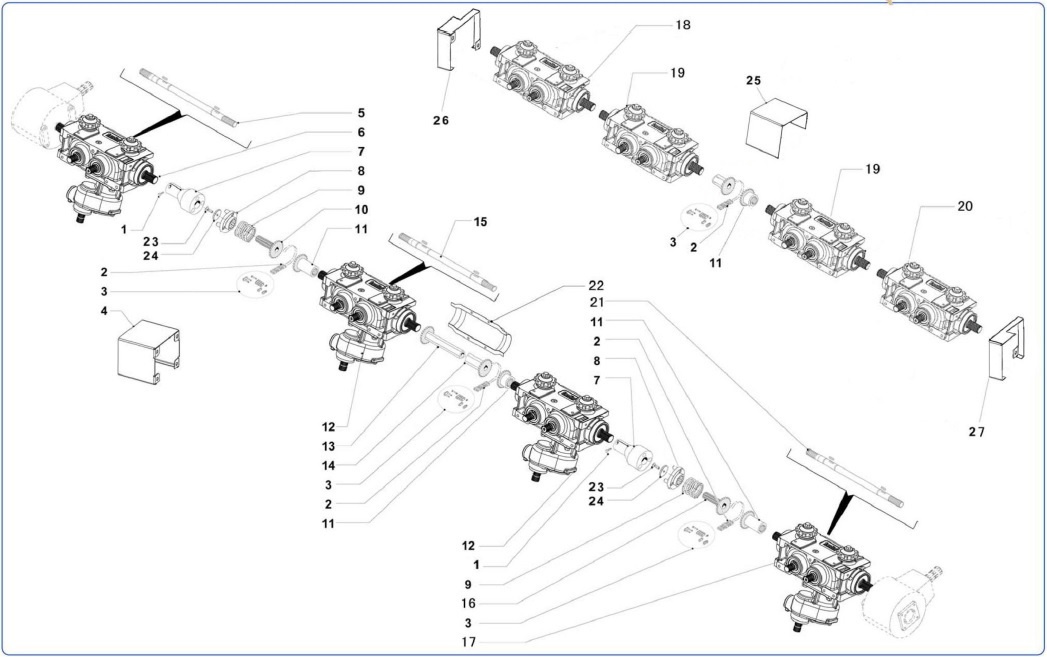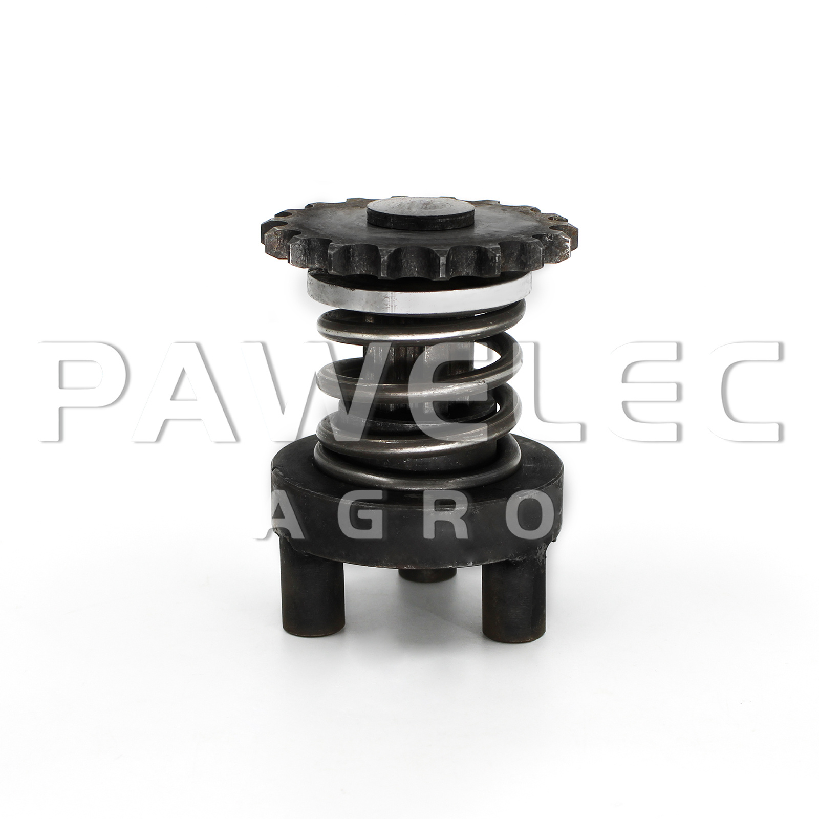 Kompletne sprzęgło palcowe męskie napędu zrywaczy przystawki do zbioru kukurydzy Elibol i Fantini LH3, LH4. Sprzęgło to jest montowane w przystawkach składanych hydraulicznie. Jest ono sprzęgłem za pomocą którego przekazywany jest napęd na zrywacze przystawki. W sprzęgle zastosowano sprężynę wspomagającą poprawne spięcie z gniazdem. Z jednej strony sprzęgła znajduje się zębatka o średnicy całkowitej 98mm i grubości 10mm, a z drugiej strony zespół palców o całkowitej średnicy 93mm. Grubości podstawy 20mm i średnicy palca 20mm. Długość palca wynosi 30mm. Całkowita długość sprzęgła wynosi 128mm. Zamiennik do 14159.
